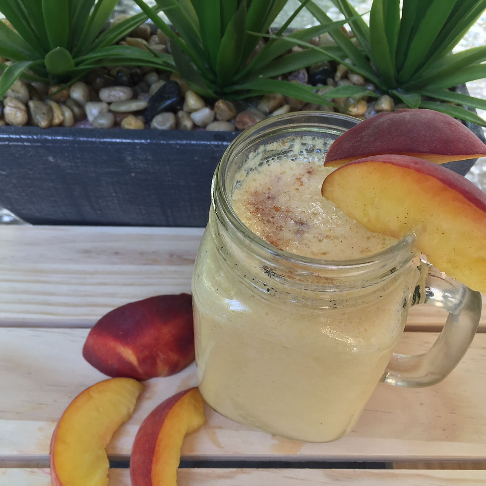 We all know Georgia is known for its peaches. And since I live in Georgia I whole-heartedly embrace that glorious peachiness. I wanted to try something a little more sweet than my usual smoothies... something that falls under the category of indulgent if you will. I made this recipe on Father's Day and both my fiance and step son LOVED it. Again, it draws a slight bit away from the "ALL NATURAL" smoothie I go for, but that's okay because just a little bit of indulgence never killed anyone and is OKAY every once in a blue moon. We work so hard all the time on our healthy and clean diets right?
